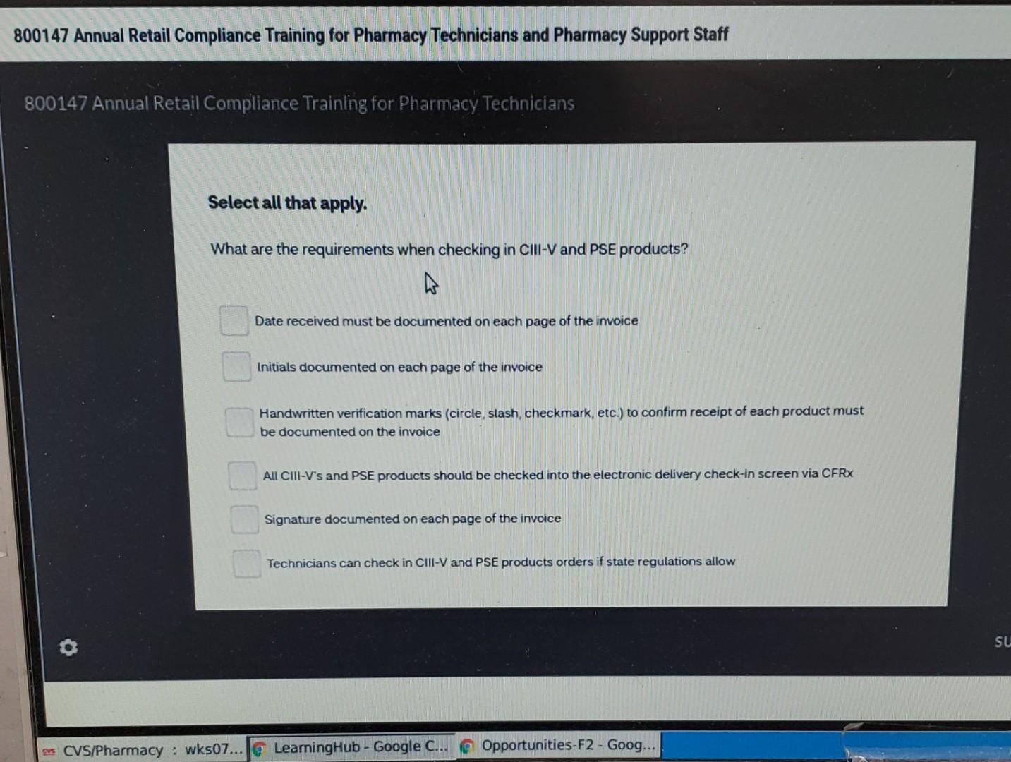 Solved 800147 Annual Retail Compliance Training For Pharmacy Chegg Com