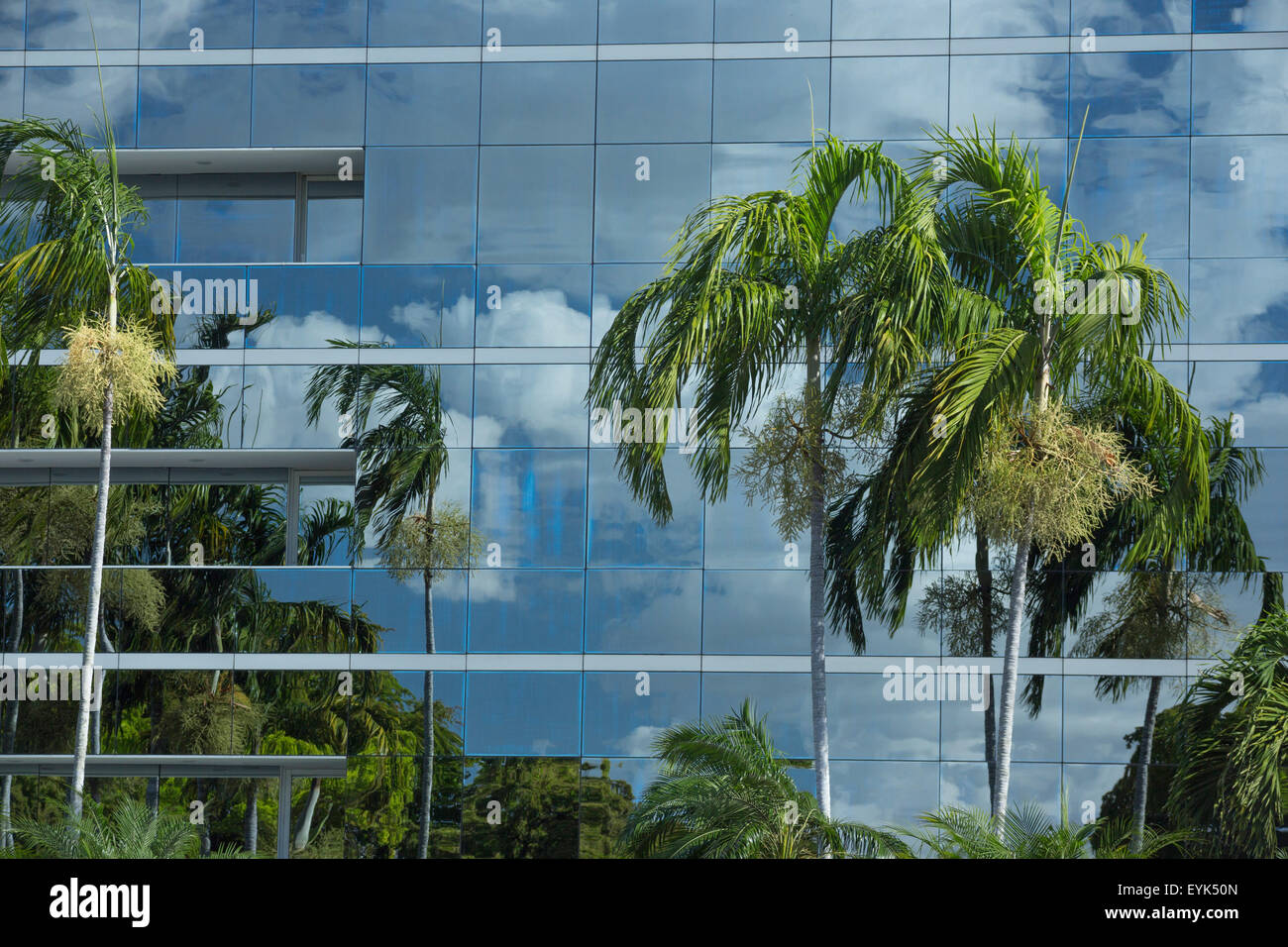Palm Trees Reflected In Glass Wall Of Suburban Office Building Miami Florida Usa Stock Photo Alamy